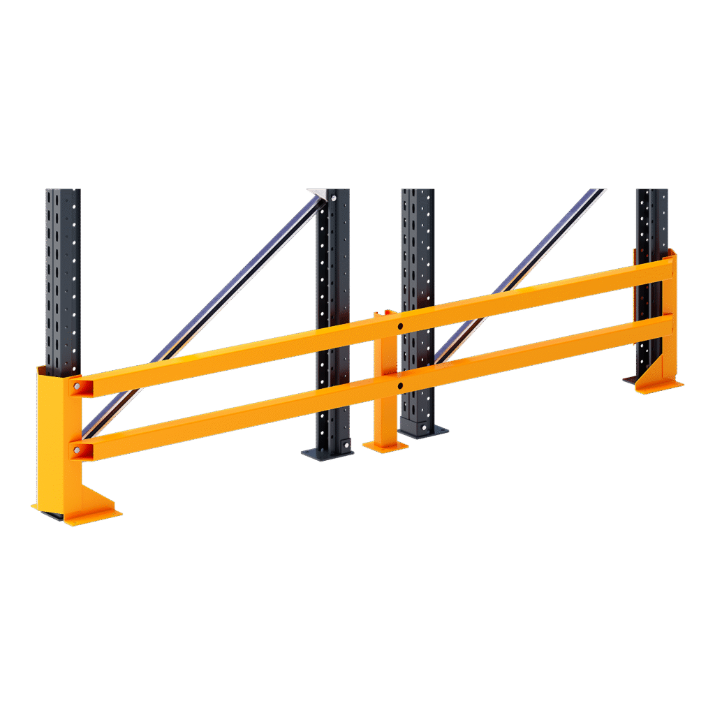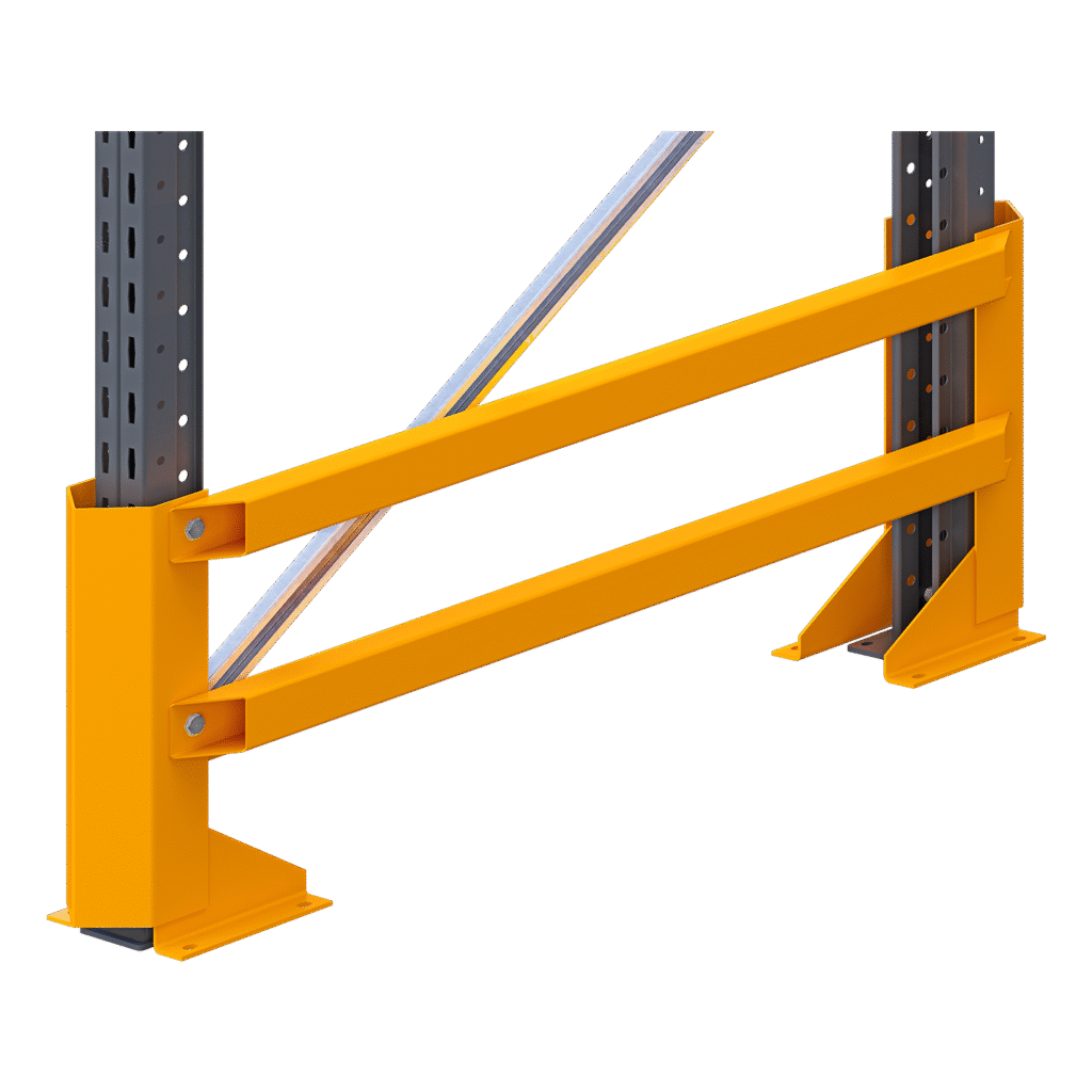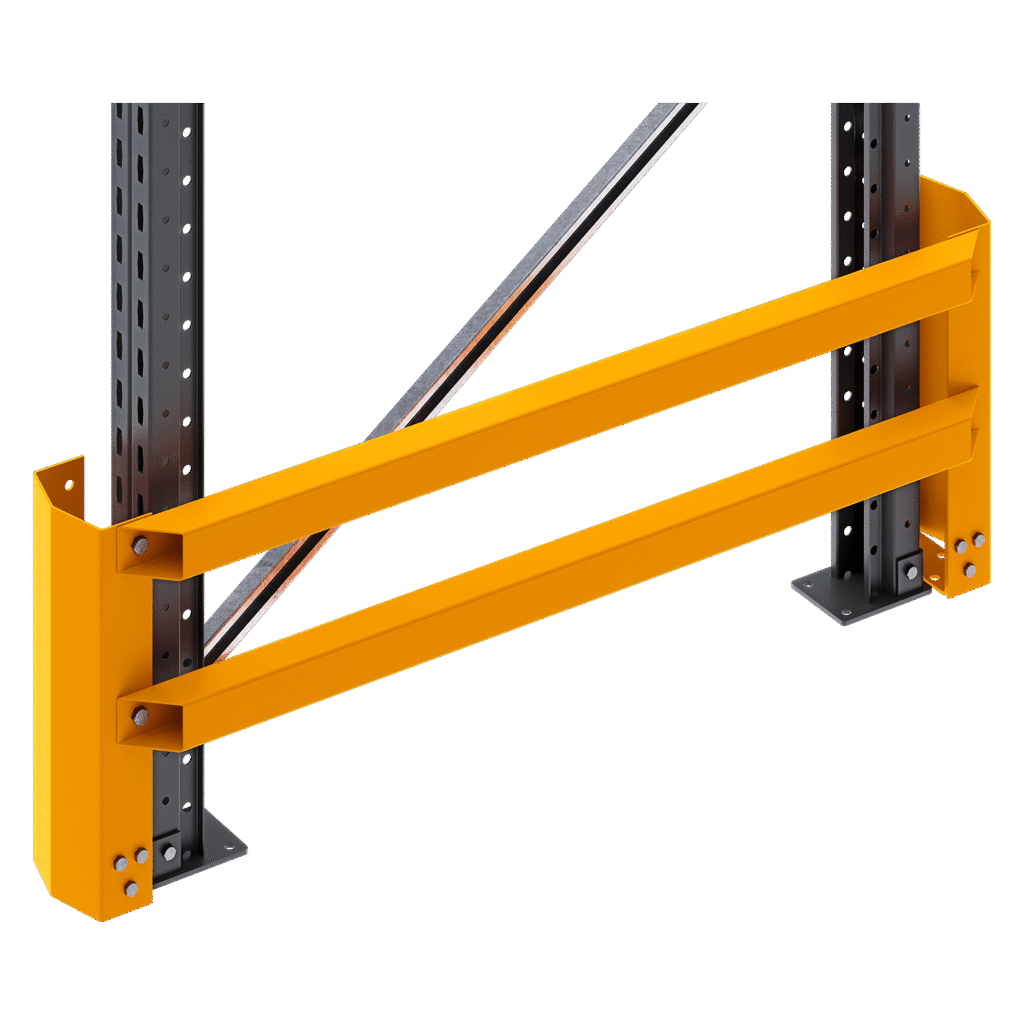 The Frame Guards shield complete frames from damage caused by forklifts and other material handling equipment, preventing structural issues like denting or bending that can compromise the safety. They help extend the lifespan of racks by reducing wear and tear, lowering repair costs, and improving overall safety by maintaining the integrity of the racking system.